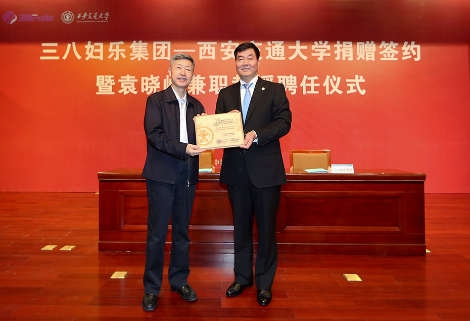 三八妇乐集团向西安交大捐资1000万元 一 董事长袁晓峰受聘为西安交大兼职教授