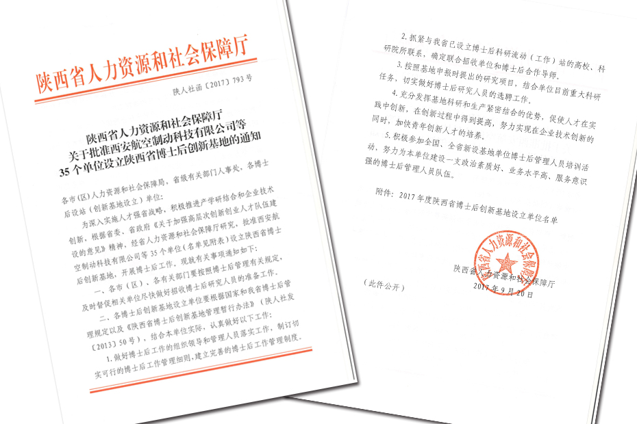 陕西省人力资源和社会保障厅发布了2017年陕西省博士后创新基地名单文件