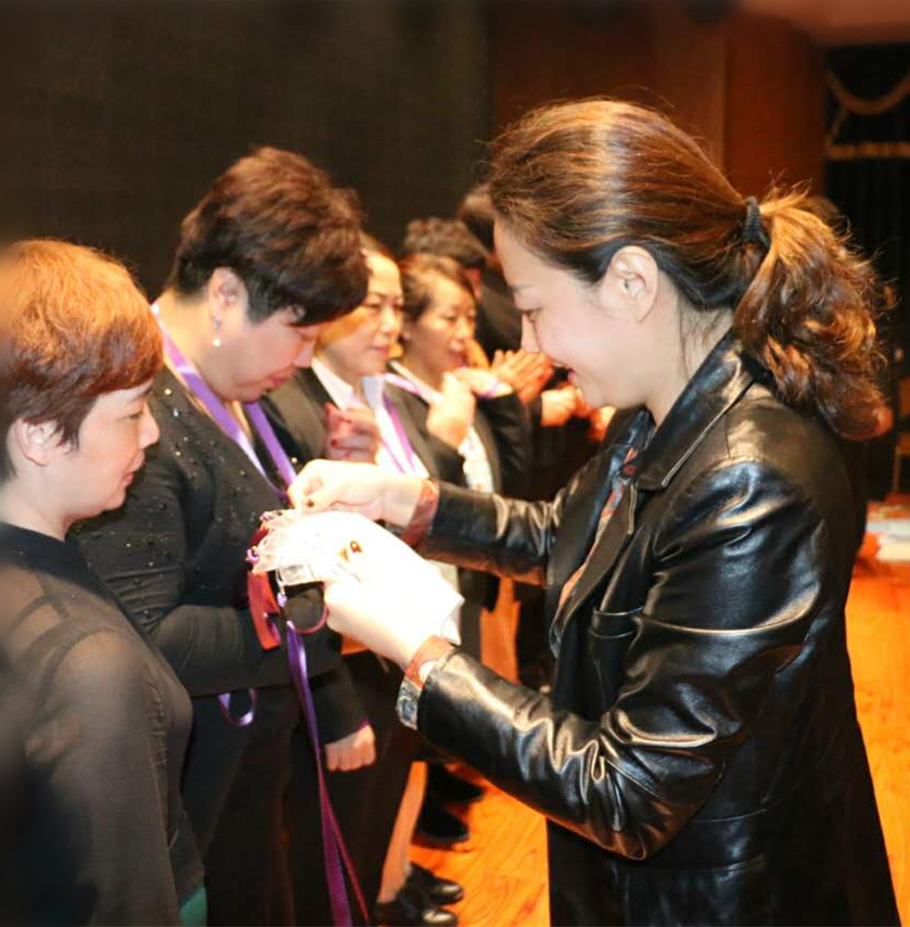 三八妇乐集团副总经理郭萌为学员颁发“直销员”证