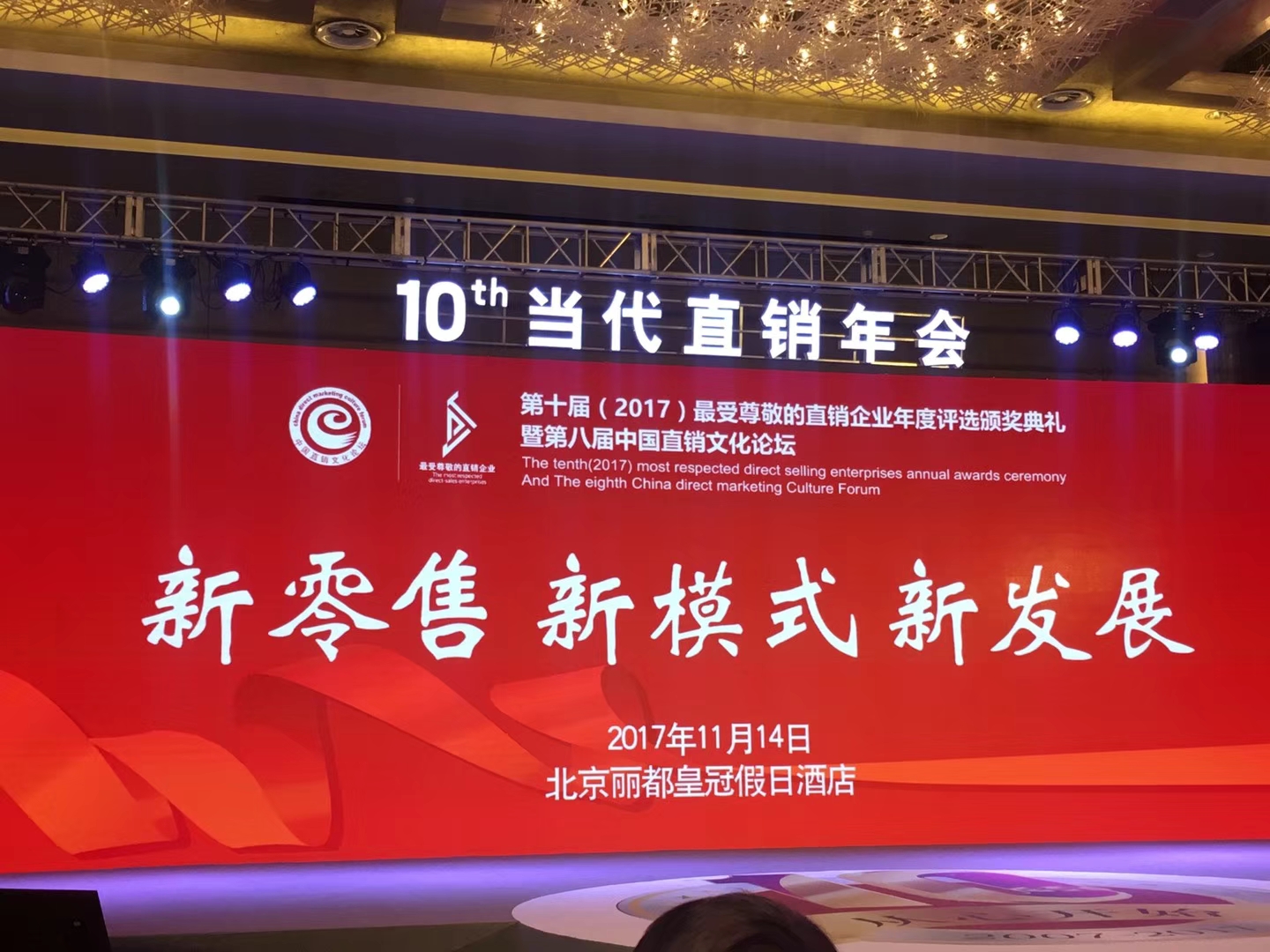 2017年11月13-15日,“第十届最受尊敬的直销企业年度评选颁奖典礼暨第八届中国直销文化论坛”在北京丽都皇冠假日酒店如期举行。此次活动由中国直销研究院、当代直销全媒体中心主办,全国商业媒体联盟、直销企业俱乐部、世界贸易网点联盟联合主办,中国直销行业整体形象提升促进委员会、中国企业文化促进会、健康中国组委会协办,广州直销企业协会、天津直销自治联盟、湖南门店及连锁销售协会、山东直销企业协会支持,营讯传媒集团承办。