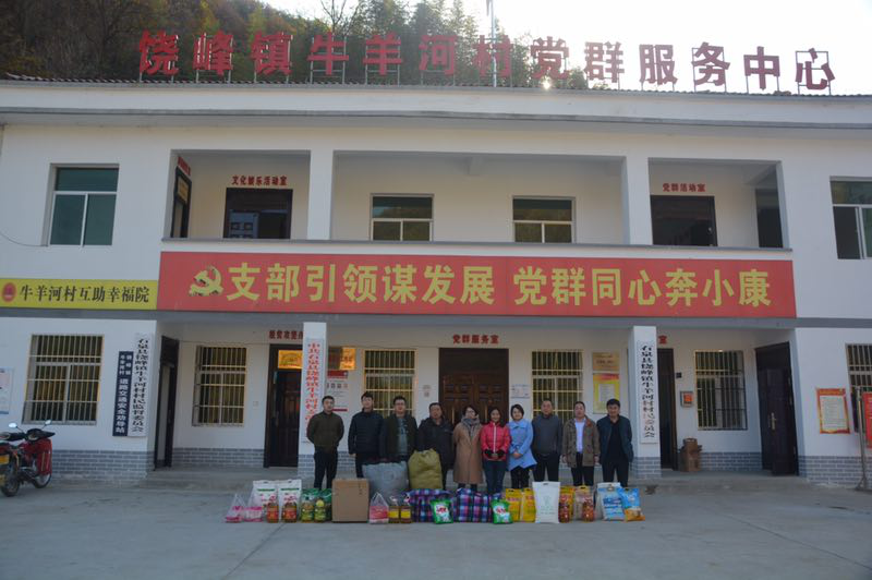 11月24日,省级包联驻村工作队全体人员和三八妇乐集团董事长助理叶江等人组成慰问组到石泉县饶峰镇牛羊河村贫困家庭程时林和胡世礼家进行慰问并送去米面粮油等慰问品,同时详细了解他们的家庭情况,特别是老人的身体状况,孩子的就业问题,帮助他们分析贫困原因,寻找脱贫致富的路子,鼓励他们坚定信心,克服困难,尽快脱贫。