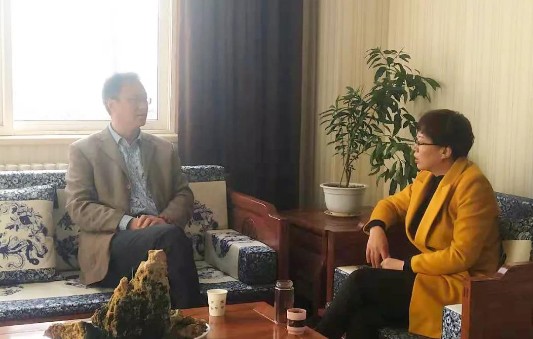 魏建峰总经理向鲁云霞副县长(中)介绍企业情况