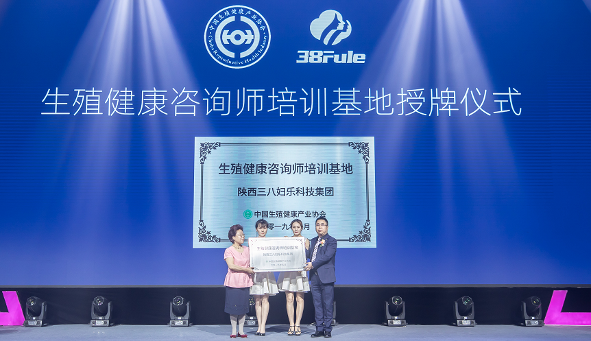 随后,中国生殖健康产业协会副会长李艳秋为三八妇乐生殖健康咨询技能培训基地授牌,三八妇乐科技股份有限公司副总裁侯旭刚代表三八妇乐接牌!