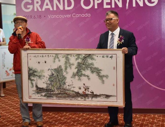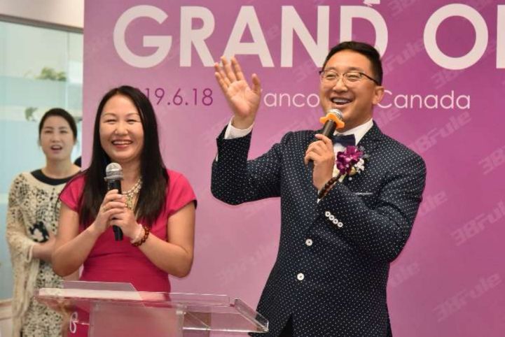 加拿大中国辽宁省总商会/同乡会创会会长吴彤,也是温哥华的金牌主持人以及38FULE Corporation 的市场总监Kelly Li 女士主持了开业盛典。