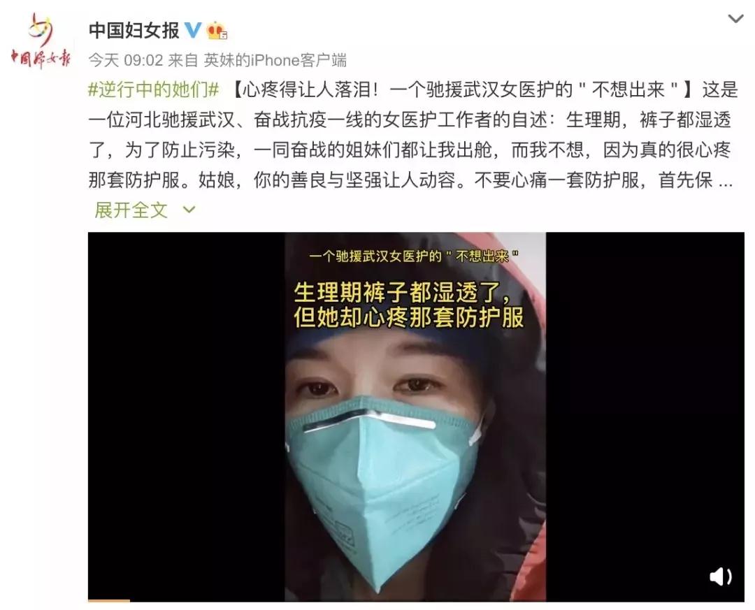 根据疫情最前线的医疗卫生机构数据显示,医生中有50%以上为女性,女性护士更超过90%!这些一线女性工作者,不仅要面临口罩、护目镜、防护服等医疗物资的紧缺,还正在或将要接受在经期状态下长时间工作,无暇自顾生理健康的考验。
