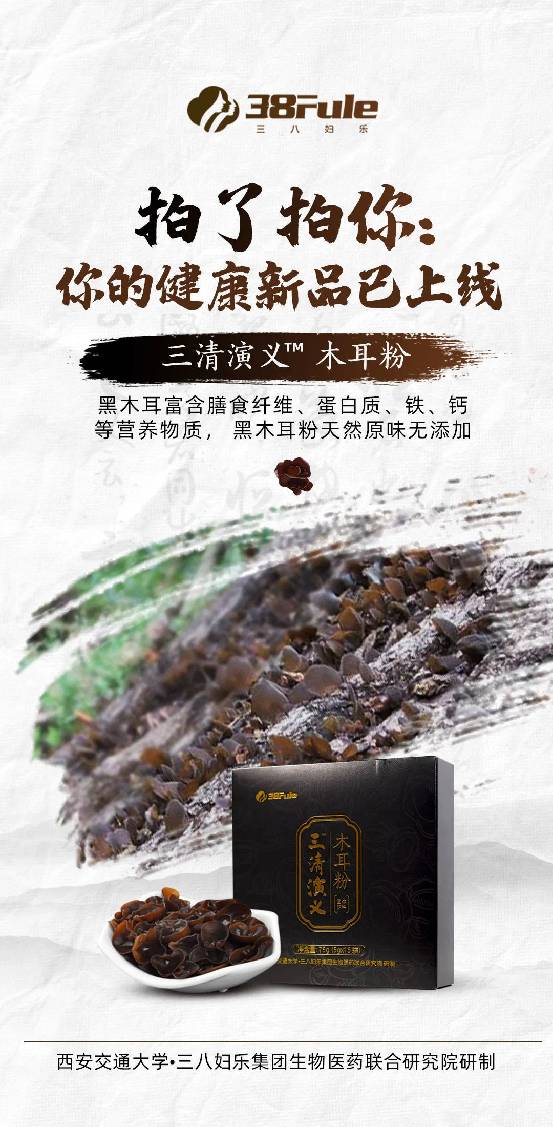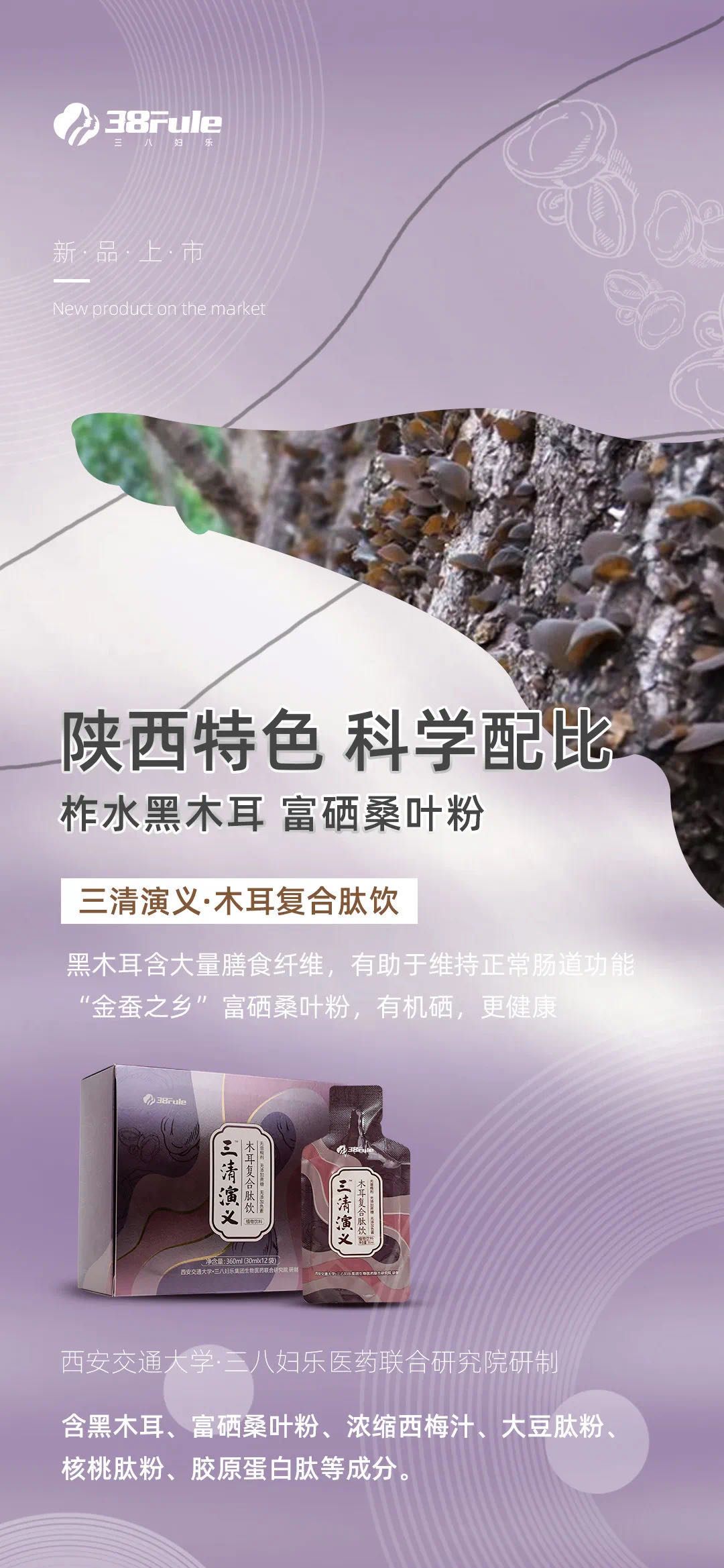 三款新品均由西安交通大学•三八妇乐集团生物医药联合研究院研制,依托秦岭中草药、食用菌等天然资源,甄选柞水本地黑木耳为原料,利用高科技生物技术将木耳破壁预消化处理,并在破壁的同时将木耳中的大分子物质转化为小分子,更利于人体吸收,大大提高了“木耳精华”的利用率,满足人体全阶段的营养需求,从源头保证了每款产品的天然品质和科技含量。