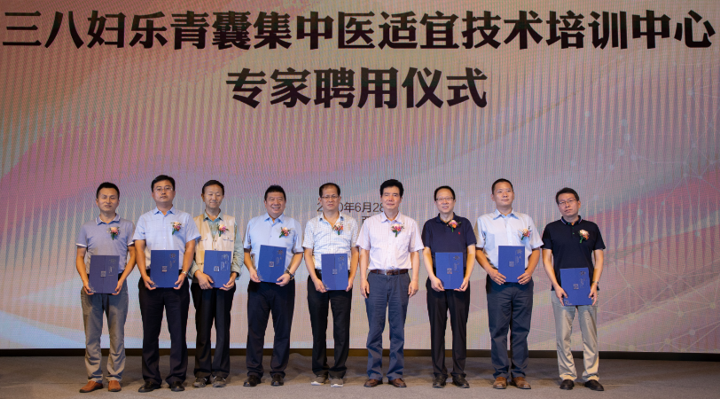 同时,三八妇乐集团董事长袁晓峰为刘智斌教授颁发青囊集中医适宜技术培训中心名誉主任聘书。随后,刘智斌主任向韩祖成教授、郝东岩教授、刘文江教授、牛文民教授、苏同生教授、王卫刚教授、王渊教授、刘国强教授等全国中医药行业的权威专家颁发聘用证书。