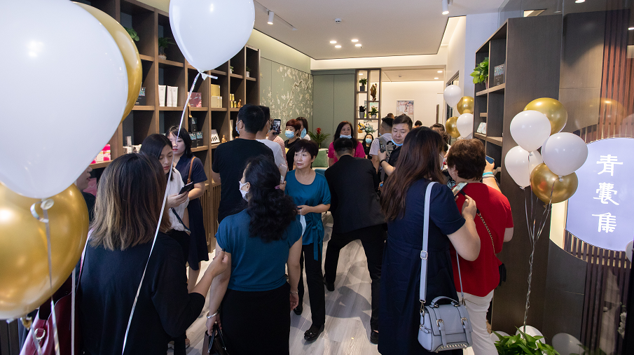 上午9时,天空笼罩着蒙蒙细雨,却掩盖不了开业庆典热闹的氛围。人群中朗朗笑声为开业庆典做了很好的点缀,热烈而又洪亮的掌声拉开了开业庆典的帷幕。陕西省政协医药卫生体育委员会副主任刘昌军,中国针灸学会副会长、陕西省针灸学会会长、陕西中医药大学原副校长刘智斌教授,中国生殖健康产业协会副会长、三八妇乐集团董事长袁晓峰教授,三八妇乐集团副董事长韩美宁和众多三八妇乐优秀志愿者代表共同见证了青囊集中华循经针推轻医馆西安文兴巷店的开业仪式。馆内、外装饰及陈设充分体现了中国传统文化特色,理疗区、美容区、接待区、茶歇区、产品体验区等一一俱全,古朴的装扮,典雅的设计,透露出现代与古典的融合,随处都能感受到传统医学文化的博大精深。