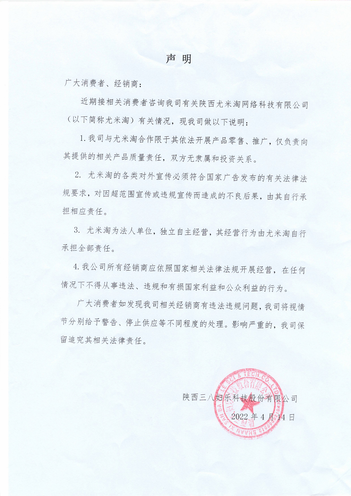 为了保护投资者的权益,确认陕西三八妇乐科技股份有限公司原职工持股会股东信息,请持有陕西三八妇乐科技股份有限公司或西安中信股权托管有限公司签发的股权权属证明文件的各投资人,将股权证明文件影印件、身份证复印件和联系电话、通讯地址等信息发送至公司邮箱,公司核实无误后将回复各投资人。