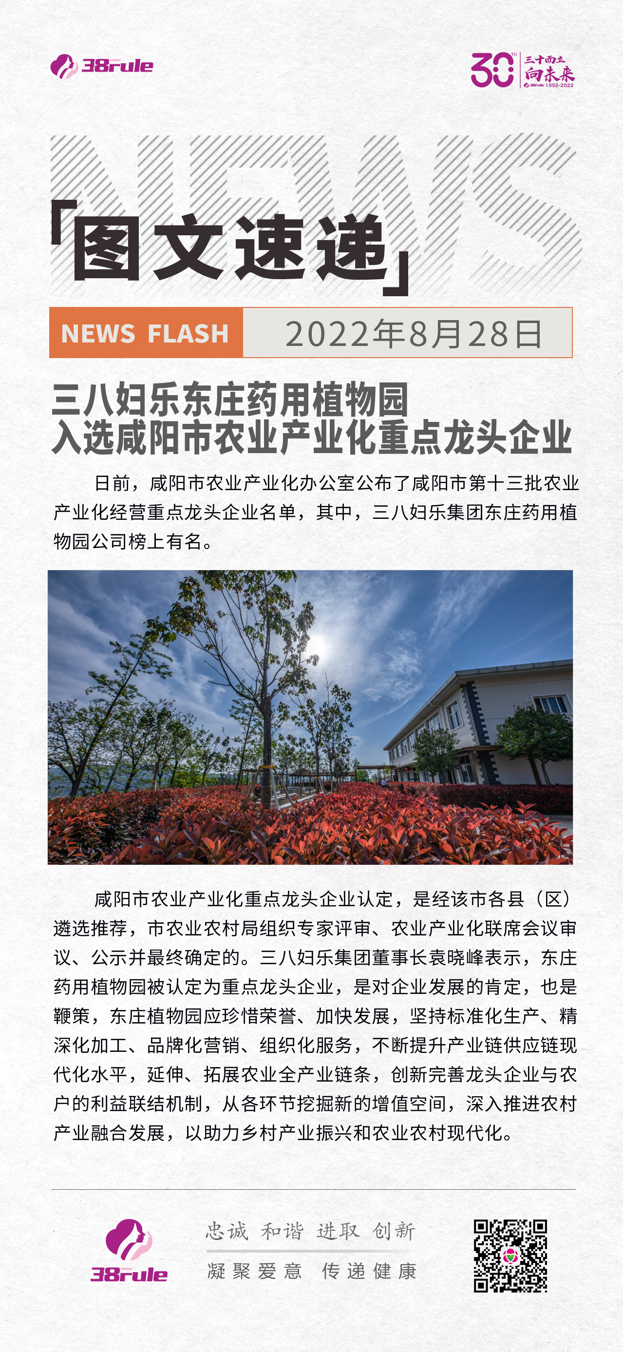 三八妇乐东庄药用植物园 入选咸阳市农业产业化重点龙头企业